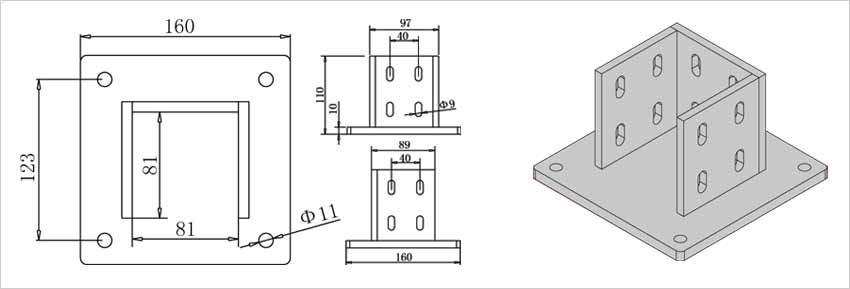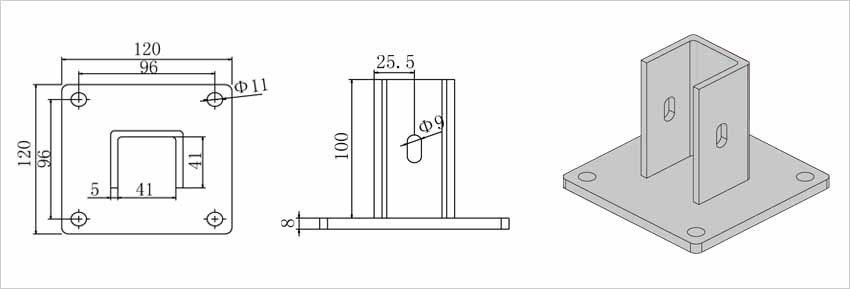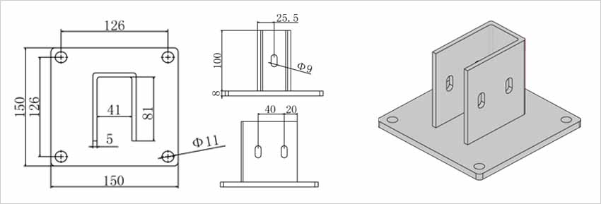 | 安裝底座特點:防護圍欄安裝底座是根據(jù)鋁型材產(chǎn)品規(guī)格而開發(fā)的一款專用防護圍欄安裝底座,具有很高的強度,可打孔安裝或焊接; | |